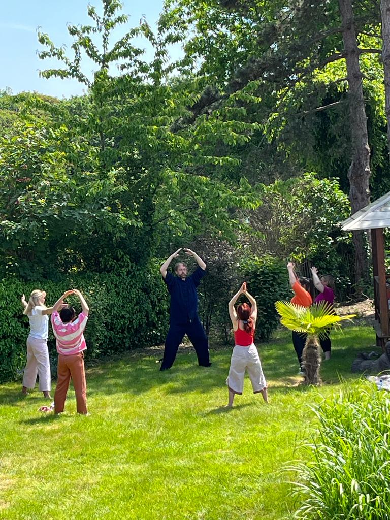 Nous commencerons par détendre le corps grâce à des exercices énergétiques liés à l’élément Feu, combinés à des exercices de respiration pour activer et harmoniser l’énergie vitale.